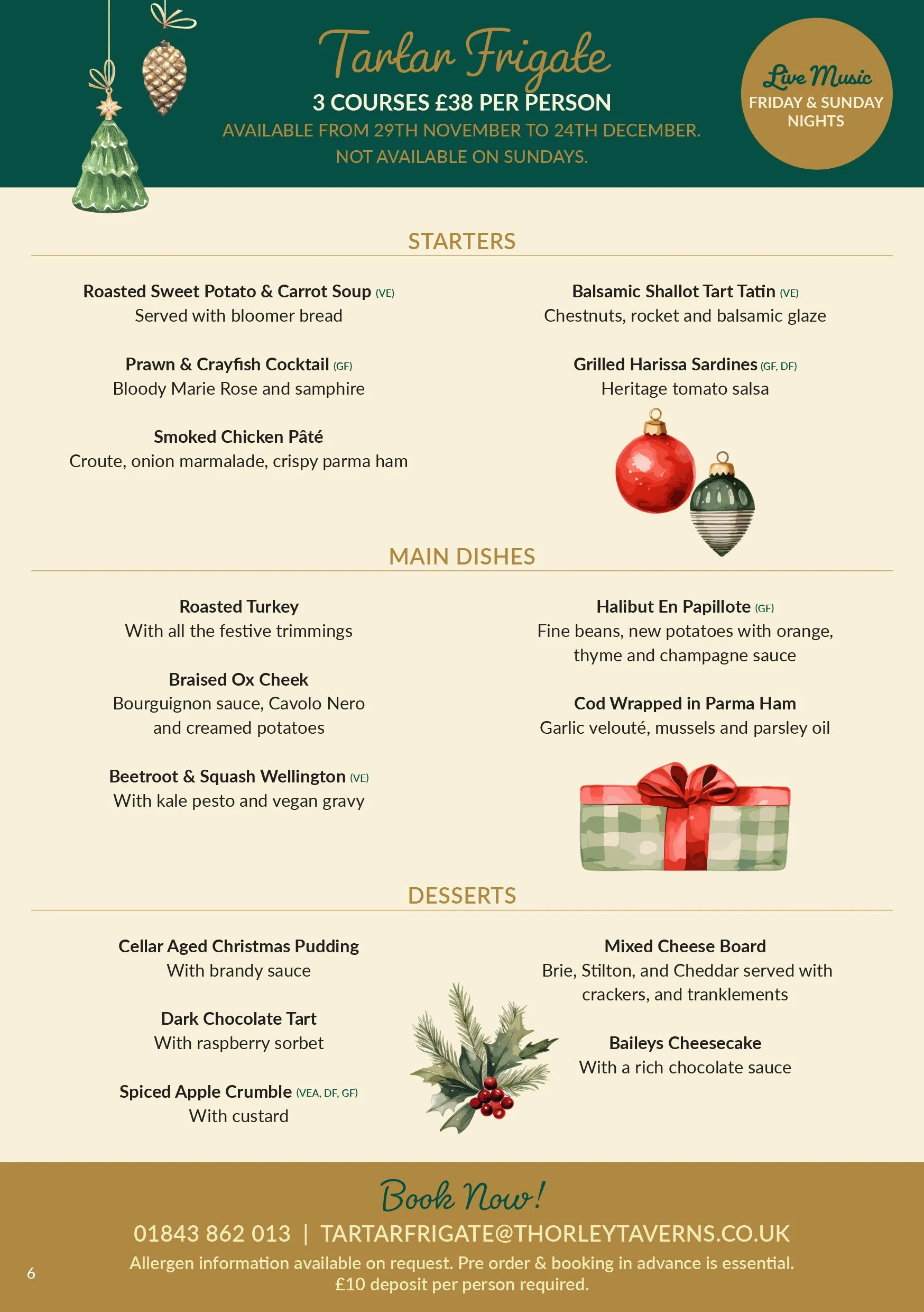 3 Course Menu | £38 per person